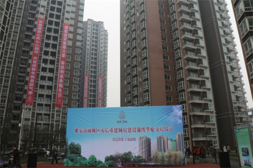 交房儀式上,出席交房儀式的相關(guān)部門負(fù)責(zé)人向付出辛勤努力的建設(shè)者表示崇高的敬意,向喜遷新居的全體居民表示熱烈的祝賀。并指出,安居房建設(shè)工作是一項(xiàng)政策性強(qiáng)、涉及面廣,復(fù)雜又繁重的工作,更是群眾關(guān)心、社會關(guān)注的熱點(diǎn),全力做好這項(xiàng)工作是大家義不容辭的責(zé)任和義務(wù)。在下一步工作中,爭取在2015年12月31日前,所有城房項(xiàng)目將達(dá)到“拆除外架、水電氣通、入戶道路通、完成樣板間、分房到戶、可以內(nèi)裝” 的要求。在既定時間內(nèi),全面完成重建任務(wù),為雅安經(jīng)濟(jì)作出貢獻(xiàn)。