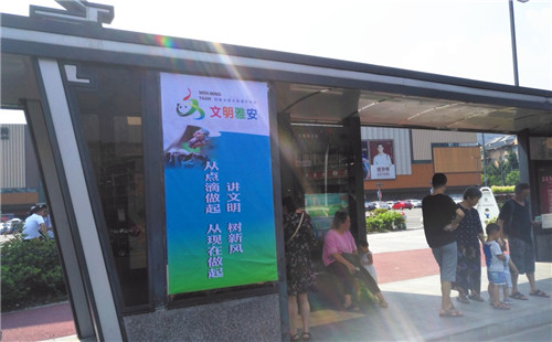 此次氛圍營(yíng)造活動(dòng),城投公司在管轄范圍內(nèi)的20處公交車站臺(tái)制作了以“社會(huì)主義核心價(jià)值觀”“講文明樹新風(fēng)”為主要內(nèi)容的宣傳展板,并利用公交車站臺(tái)LED顯示屏滾動(dòng)播放相關(guān)標(biāo)語。