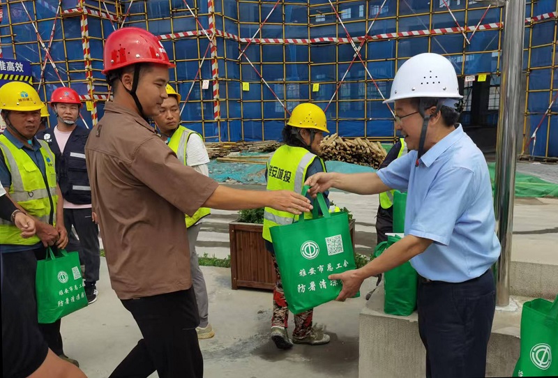 7月22日,四川省總工會黨組成員、副主席苗勇一行,赴城投公司承建的雅安市工人文化宮項目現場開展夏季“送清涼”慰問活動。雅安市委常委、統(tǒng)戰(zhàn)部部長、市總工會主席李蓉,市總工會黨組書記、常務副主席趙雅玲等陪同慰問。