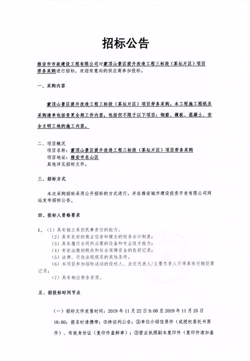 蒙頂山景區(qū)提升改造工程三標段(茶壇片區(qū))勞務采購項目招標公告