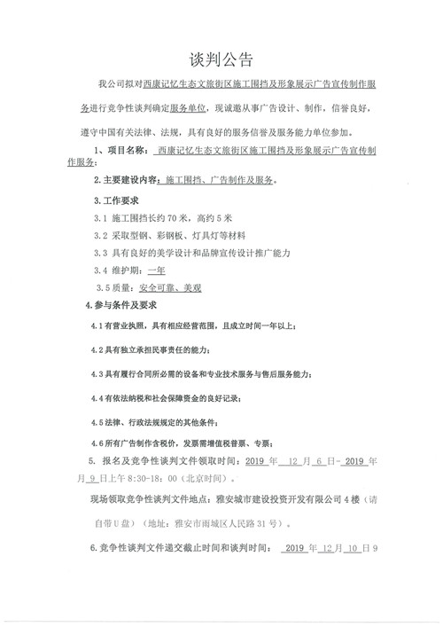 西康記憶生態(tài)文旅街區(qū)施工圍擋及形象展示廣告宣傳制作服務(wù)競爭性談判公告