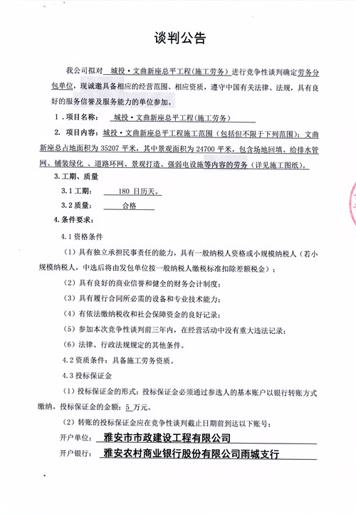 城投·文曲新座總平工程(施工勞務(wù))競(jìng)爭(zhēng)性談判公告