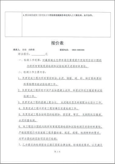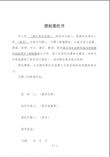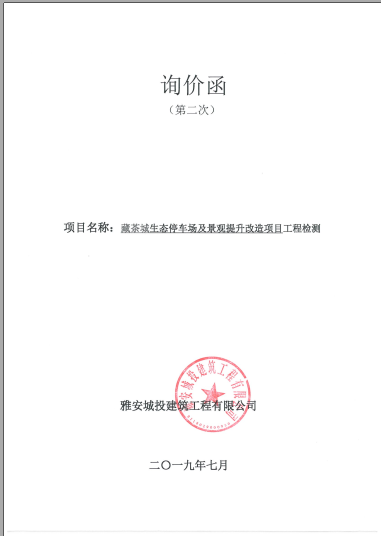 藏茶城生態(tài)停車場及景觀提升改造項目工程檢測詢價函