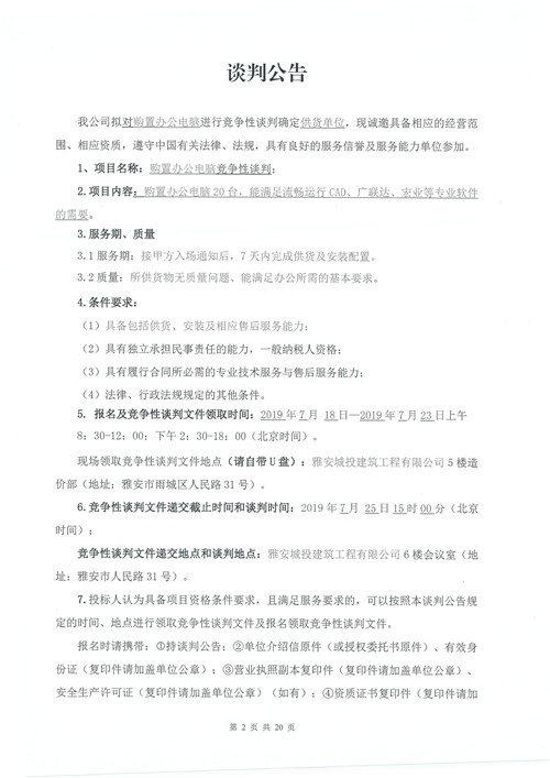 城投建工購置辦公電腦確認供貨單位的競爭性談判公告