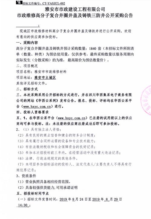 市政維修高分子復(fù)合井圈井蓋及鑄鐵三防井公開采購(gòu)公告
