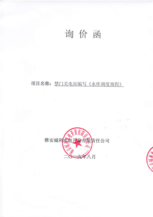 雅安城利水電開發(fā)有限責(zé)任公司禁門關(guān)電站編寫《水庫調(diào)度規(guī)程》競爭性談判公告