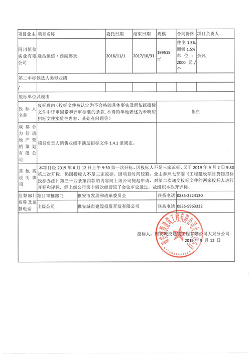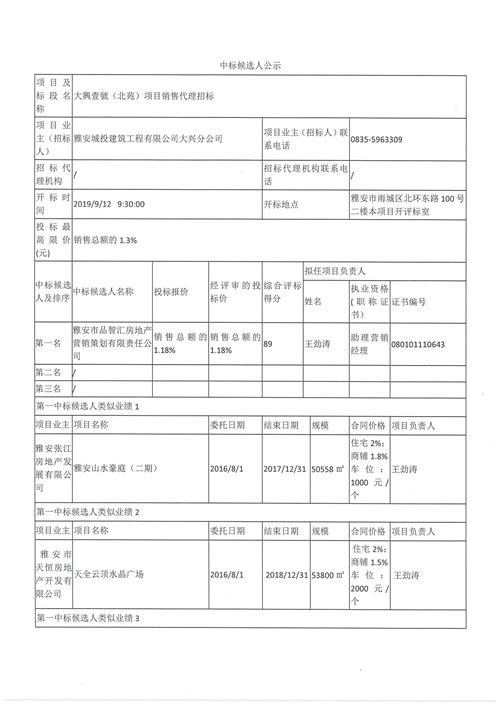 大興壹號(北苑)項目銷售代理招標中標候選人公示
