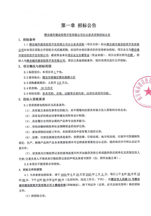 城投公司辦公家具采購招標公告