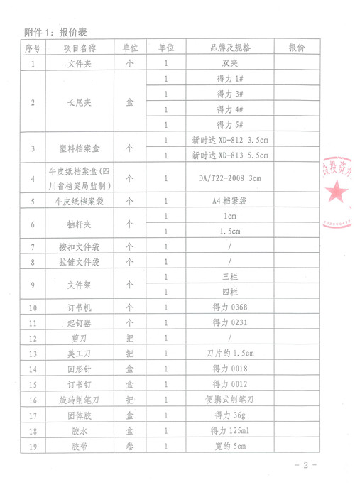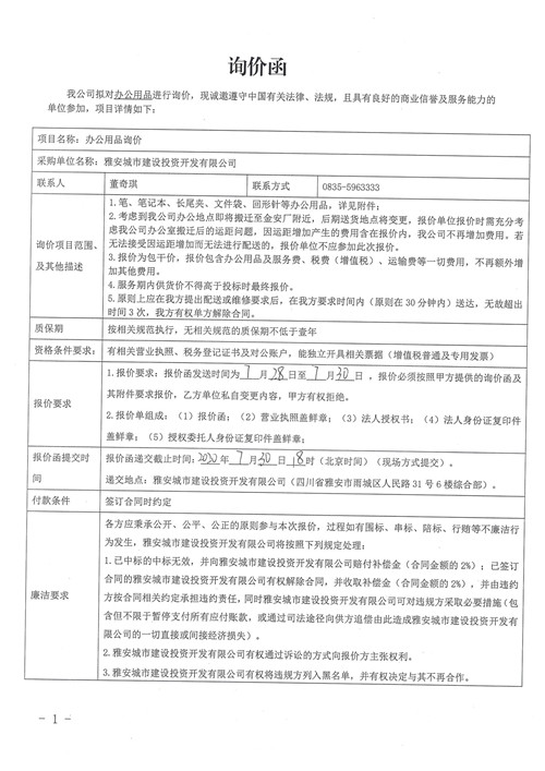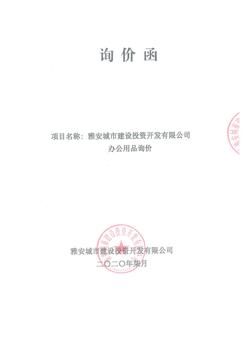 雅安城市建設(shè)投資開發(fā)有限公司辦公用品詢價(jià)