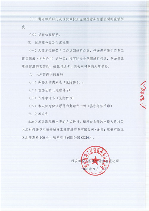 關(guān)于征集勞務(wù)施工人員入庫(kù)的公告