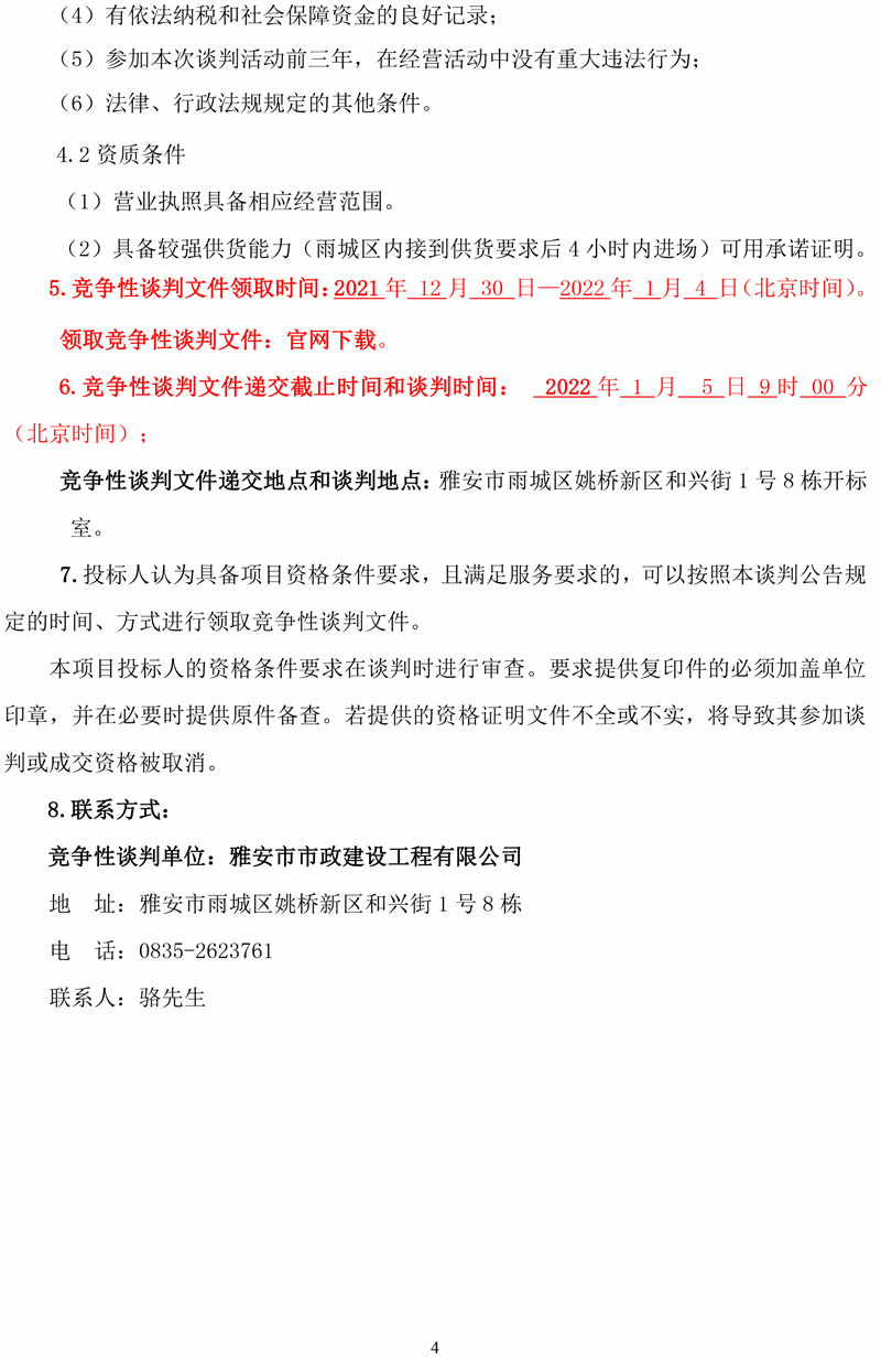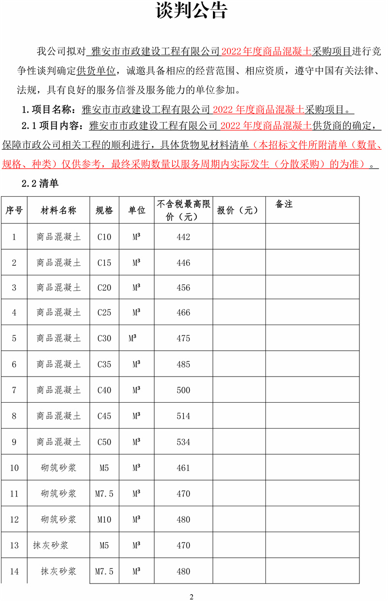 雅安市市政建設(shè)工程有限公司2022年度商品混凝土采購項(xiàng)目競爭性談判公告