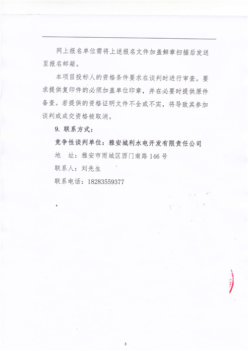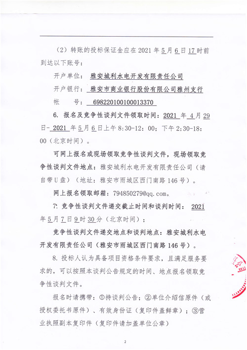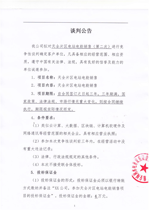 城利水電公司天全片區(qū)電站電能銷售(第二次)競爭性談判