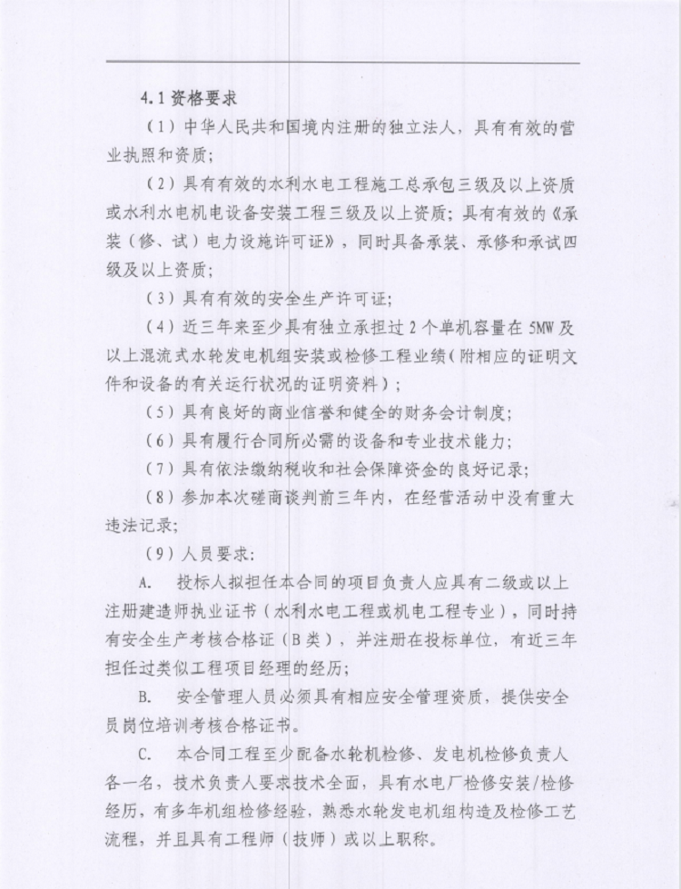 雅安城利水電公司2022年度水輪發(fā)電機(jī)組檢修工程談判磋商公告