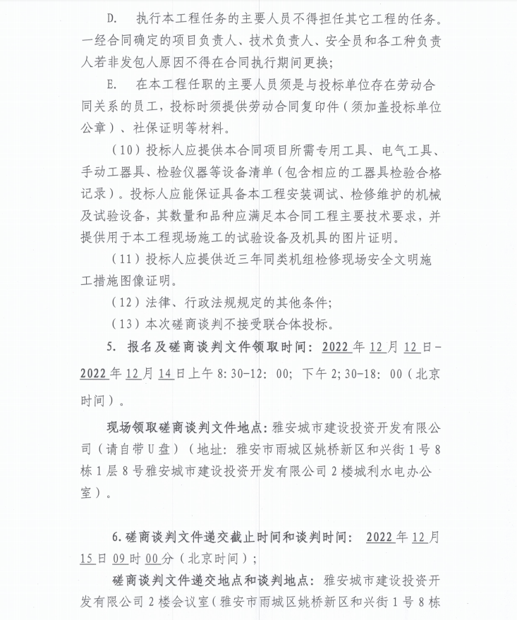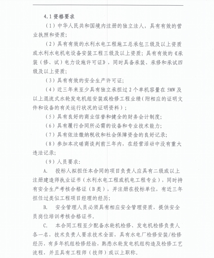 雅安城利水電公司2022年度水輪發(fā)電機(jī)組檢修工程(第二次)磋商談判公告