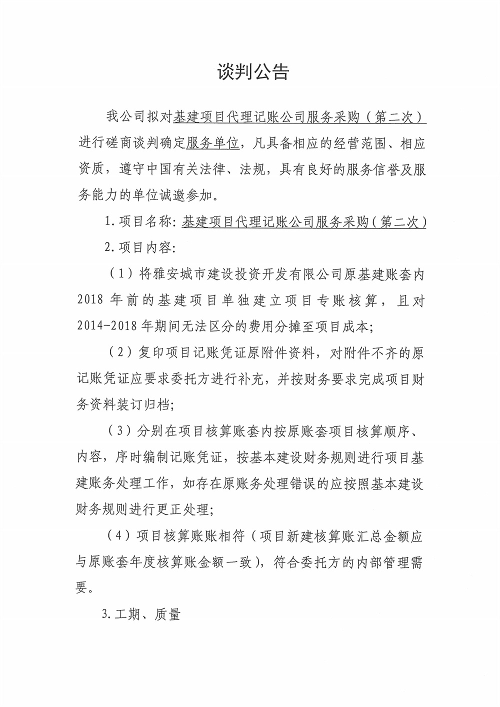 城投公司基建項目代理記賬公司服務(wù)采購磋商談判公告(第二次)