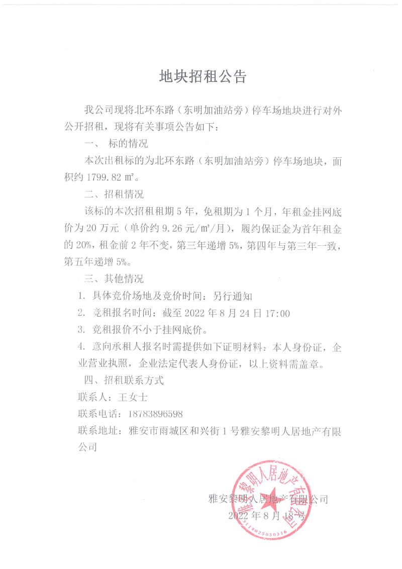 地塊招租公告