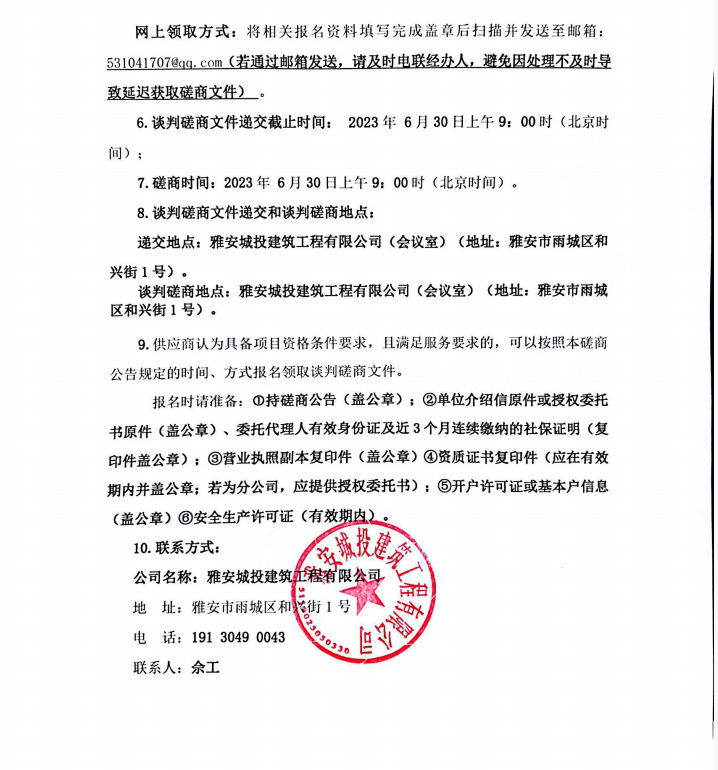 四川省區(qū)域應急救援雅安基地項目欄桿專業(yè)分包談判磋商公告