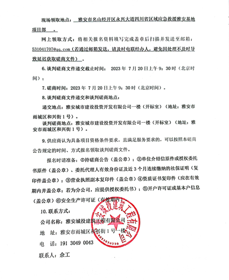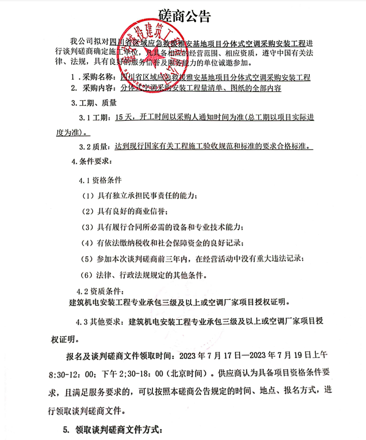 四川省區(qū)域應(yīng)急救援雅安基地項(xiàng)目分體式空調(diào)采購(gòu)安裝工程談判磋商公告