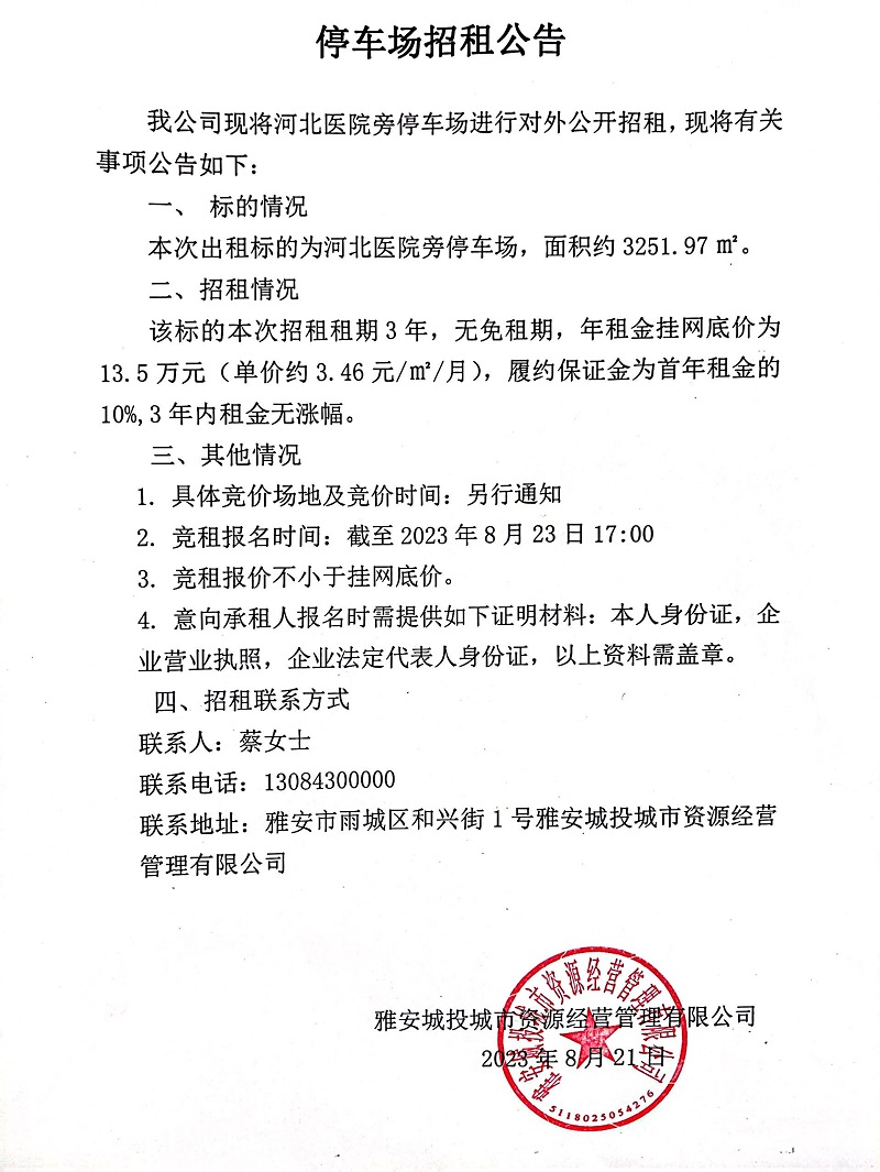 河北醫(yī)院旁停車場招租公告
