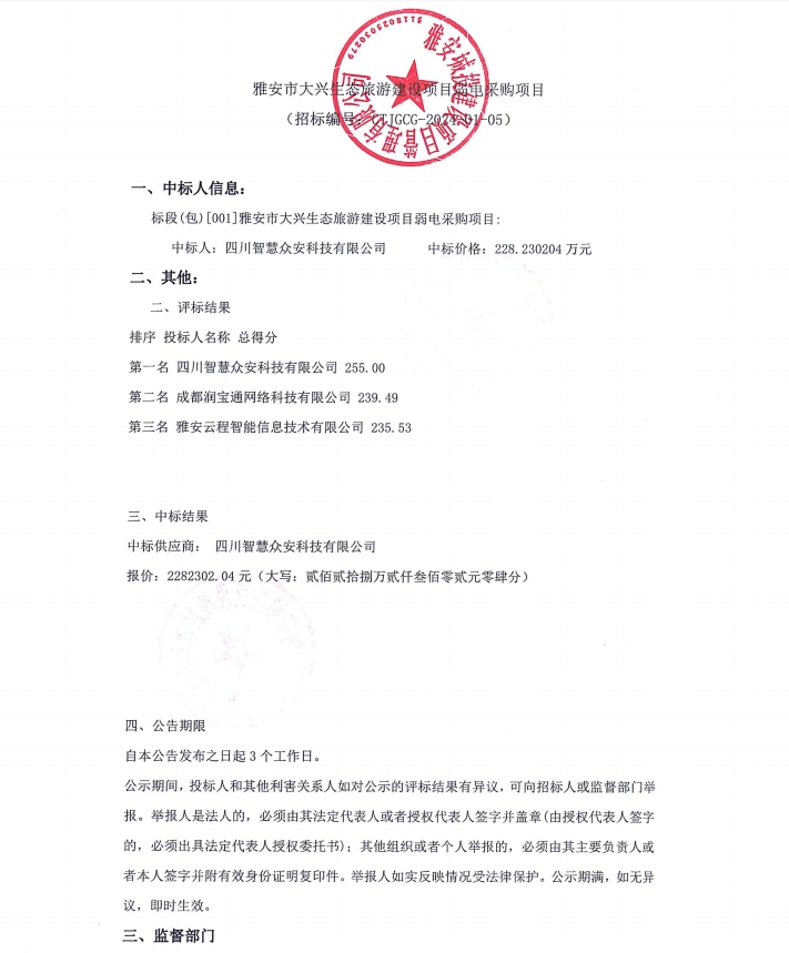 雅安市大興生態(tài)旅游建設項目弱電采購項目公告