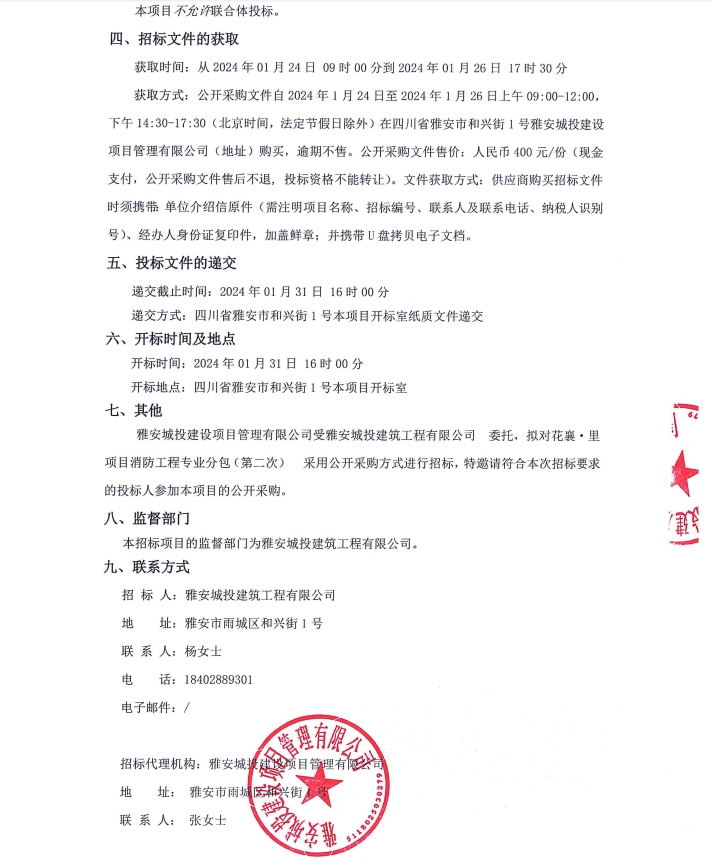 花襄·里項目消防工程專業(yè)分包(第二次)公告