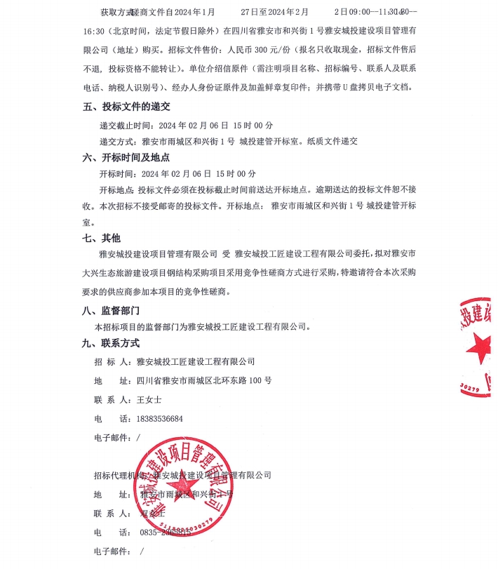 雅安市大興生態(tài)旅游建設(shè)項目鋼結(jié)構(gòu)采購項目公告