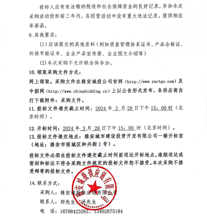 采購(gòu)文件--2024年3月-2025年2月雅安城投供應(yīng)鏈有限公司鋼材集中采購(gòu)