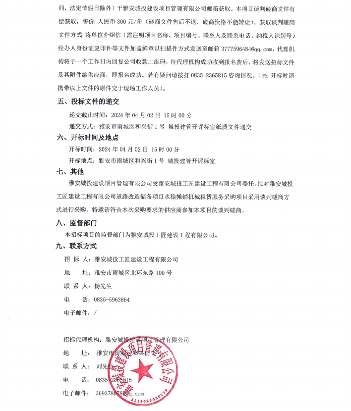雅安城投工匠建設(shè)工程有限公司道路改造儲(chǔ)備項(xiàng)目水穩(wěn)攤鋪機(jī)械租賃服務(wù)采購(gòu)項(xiàng)目公告