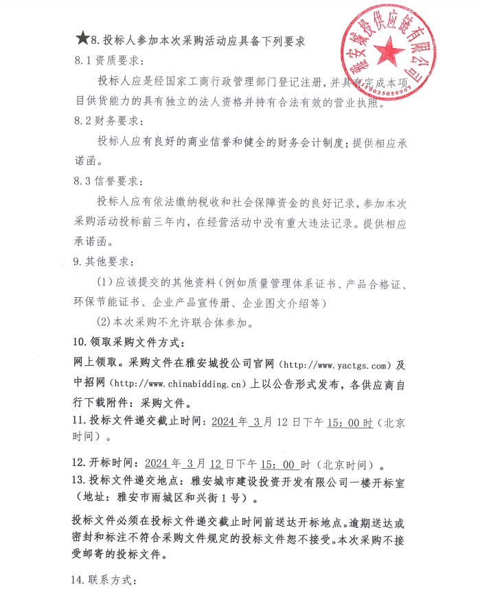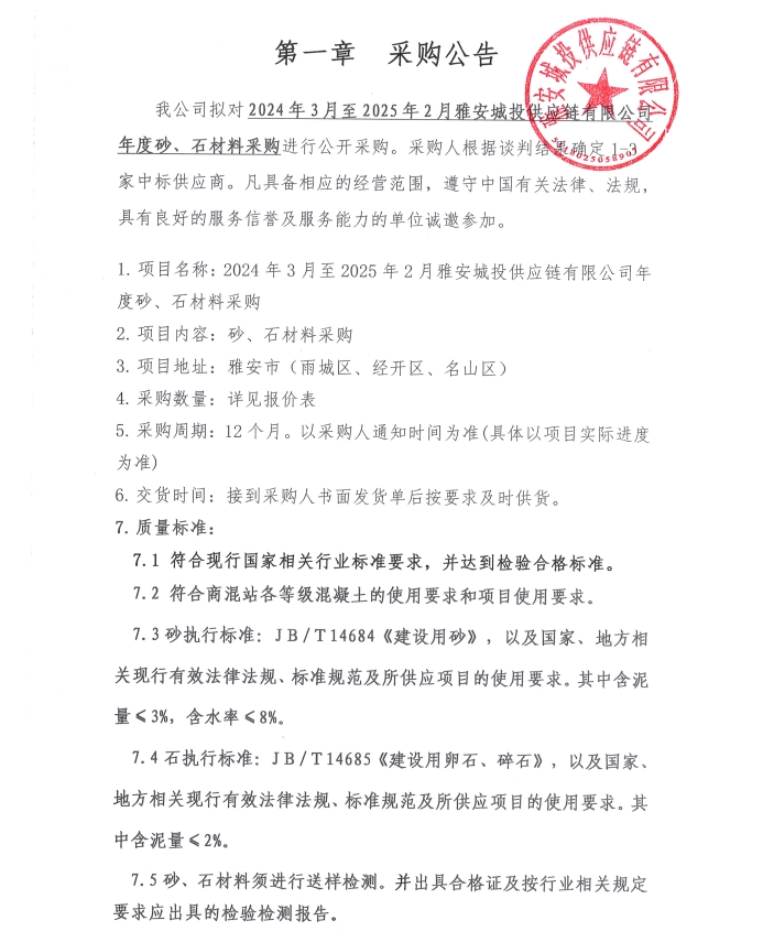 采購文件(2024年3月至2025年2月雅安城投供應(yīng)鏈有限公司年度砂、石材料采購)