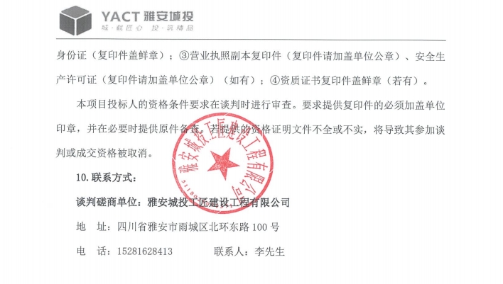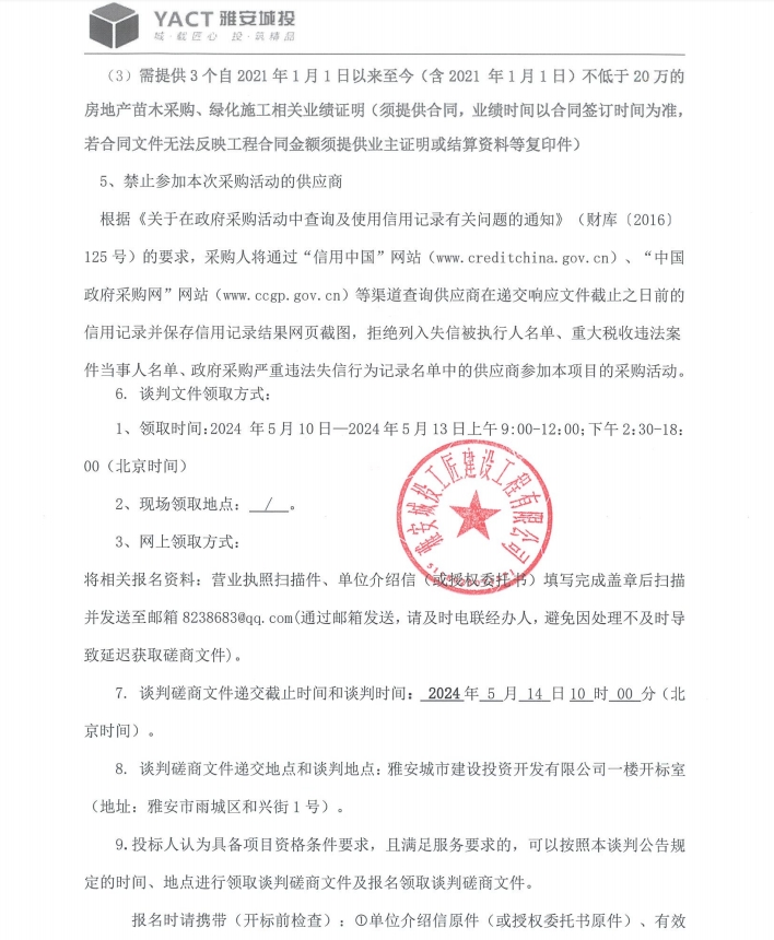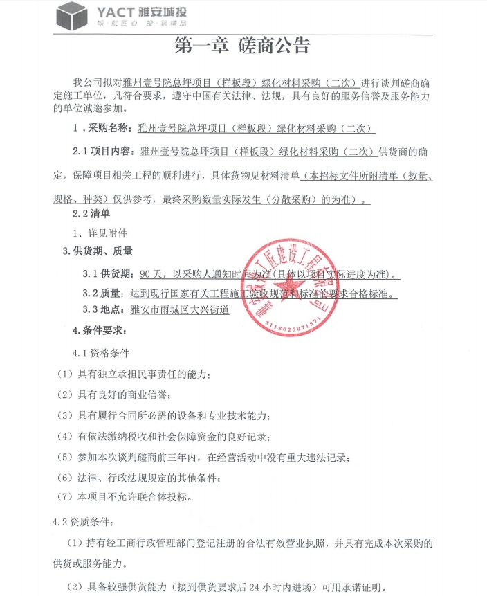 雅州壹號院總坪項(xiàng)目(樣板段)綠化材料采購 (二次)磋商公告