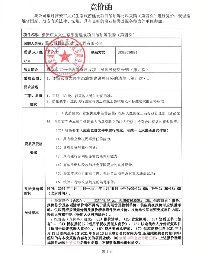 附件:雅安市大興生態(tài)旅游建設(shè)項(xiàng)目吊頂?shù)炔牧喜少?gòu)(第四次)競(jìng)價(jià)文件