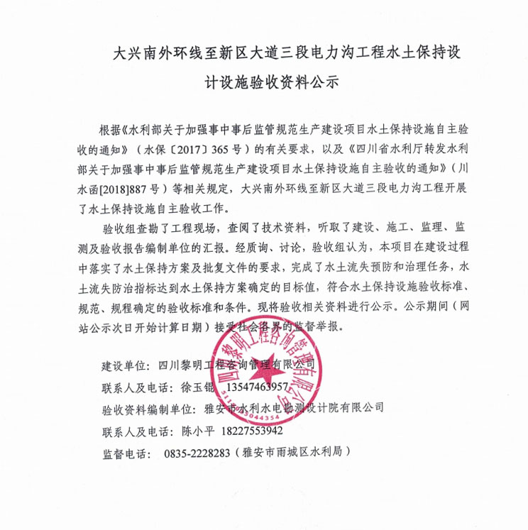 大興南外環(huán)線(xiàn)至新區(qū)大道三段電力溝工程水土保持設(shè)計(jì)設(shè)施驗(yàn)收資料公示