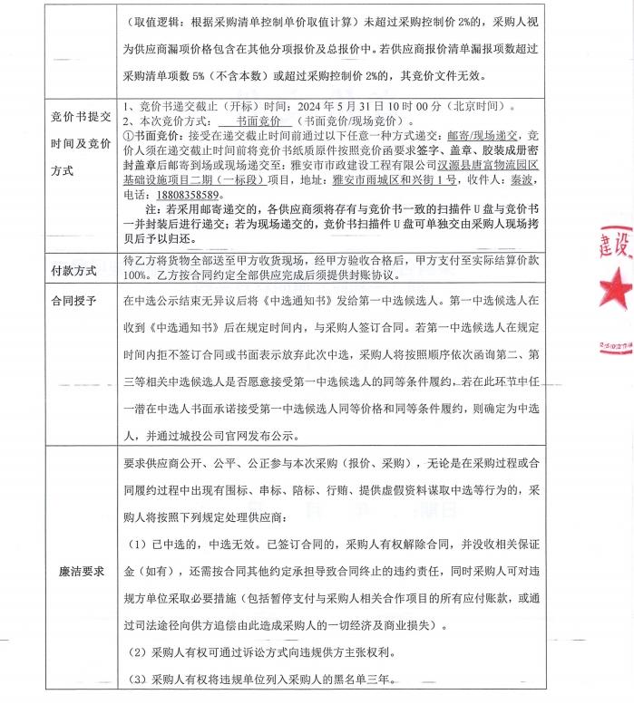 漢源縣唐富物流園區(qū)基礎設施項目二期(一標段)照明材料采購競價公告