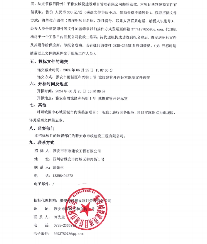 雨城區(qū)中心城區(qū)城市內(nèi)澇整治項目(一標(biāo)段)勞務(wù)分包服務(wù)項目公告