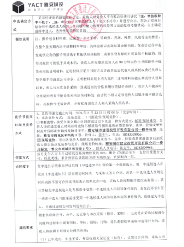 雅安市大興生態(tài)旅游建設(shè)項目洗凈細(xì)白沙材料采購(二次)競價公告