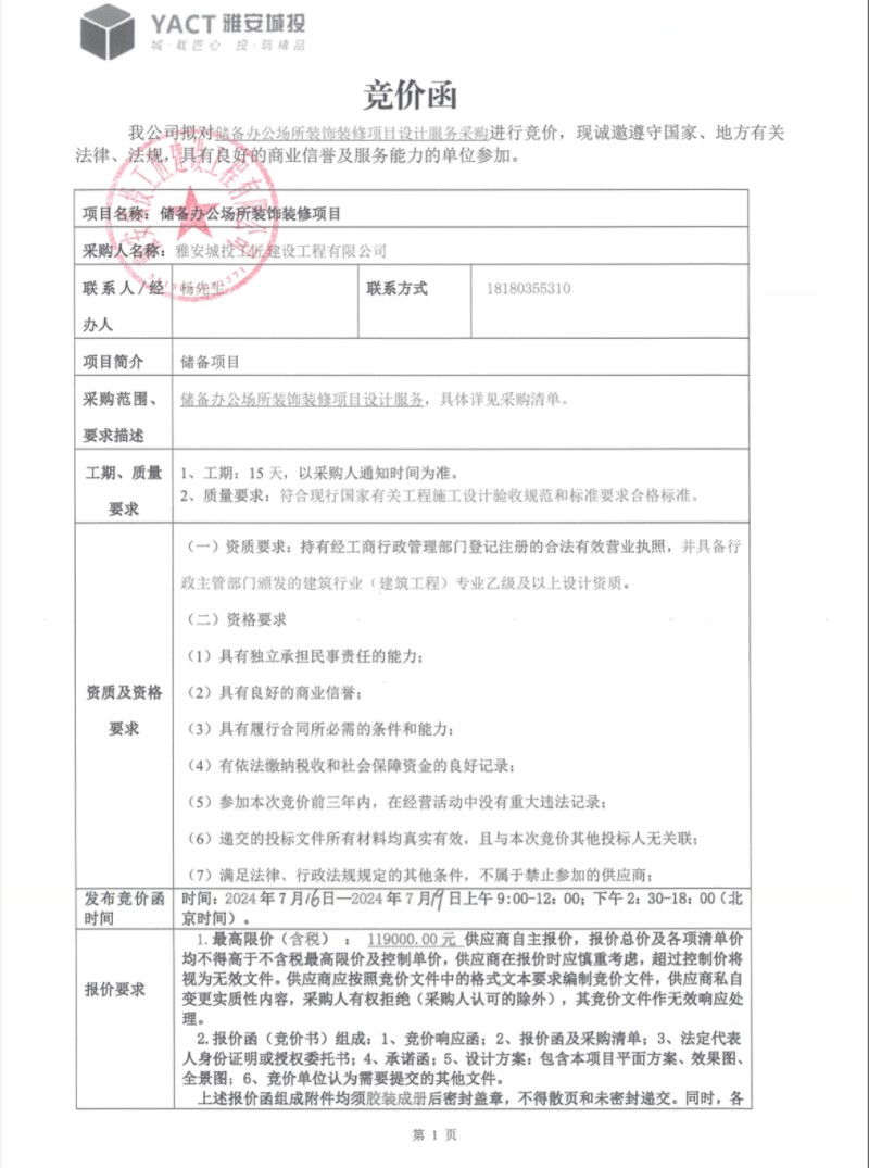 儲(chǔ)備辦公場所裝飾裝修項(xiàng)目競價(jià)公告