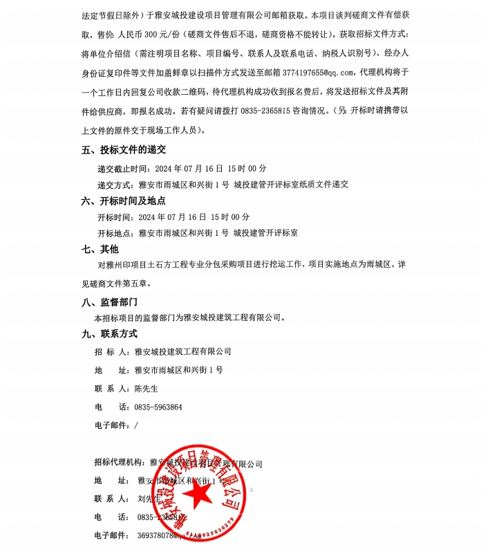 雅州印項(xiàng)目土石工程專業(yè)分包采購(gòu)項(xiàng)目招標(biāo)公告